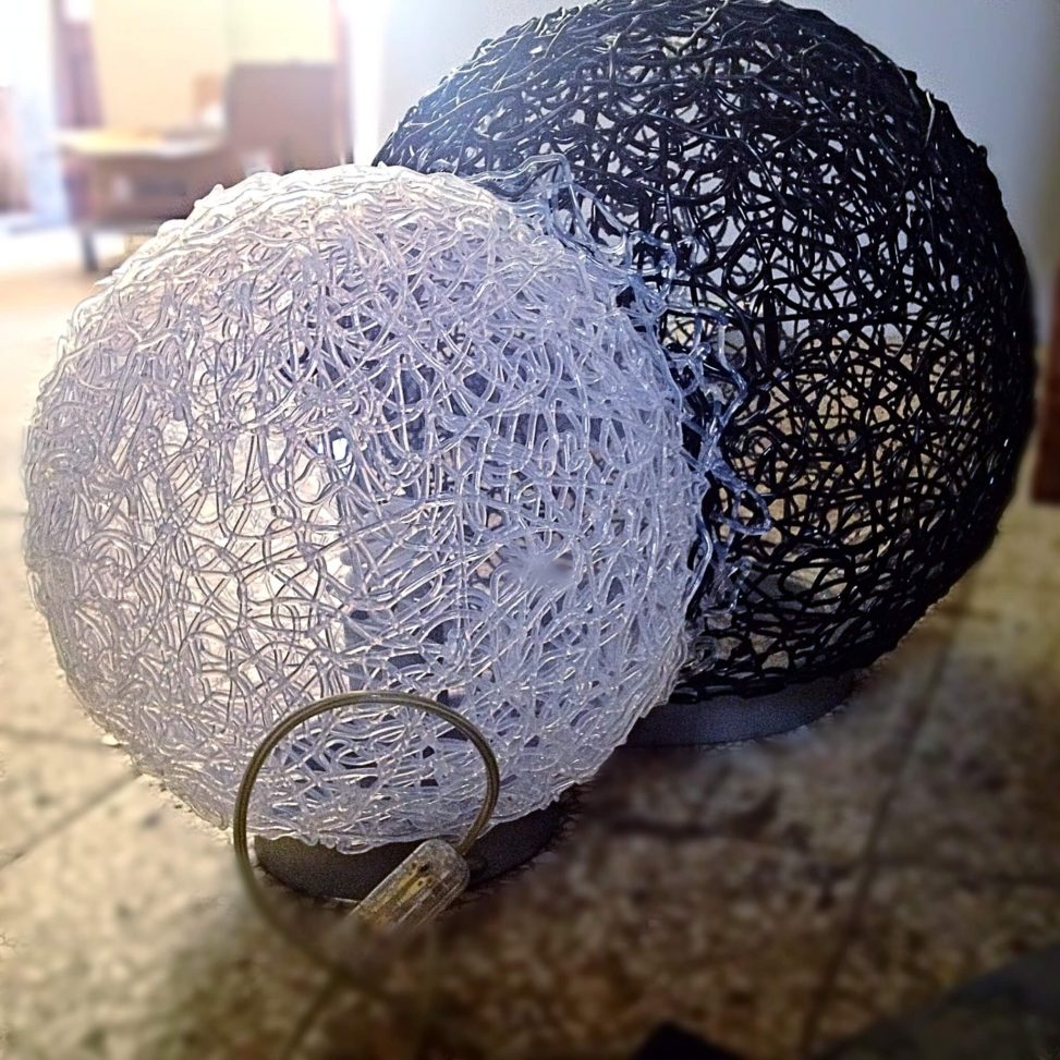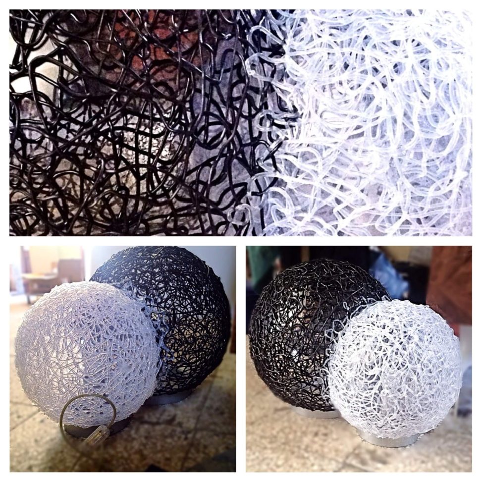 “Bene e male”…. il bene per quanto sia poco sulla terra è in continua lotta contro il male che ormai attanaglia il mondo, la speranza però, è racchiusa nella sfera bianca, che per quanto più piccola possa essere, rimane sempre il bene, e anche se è contaminata, contamina a sua volta la sfera nera, immagine del male.